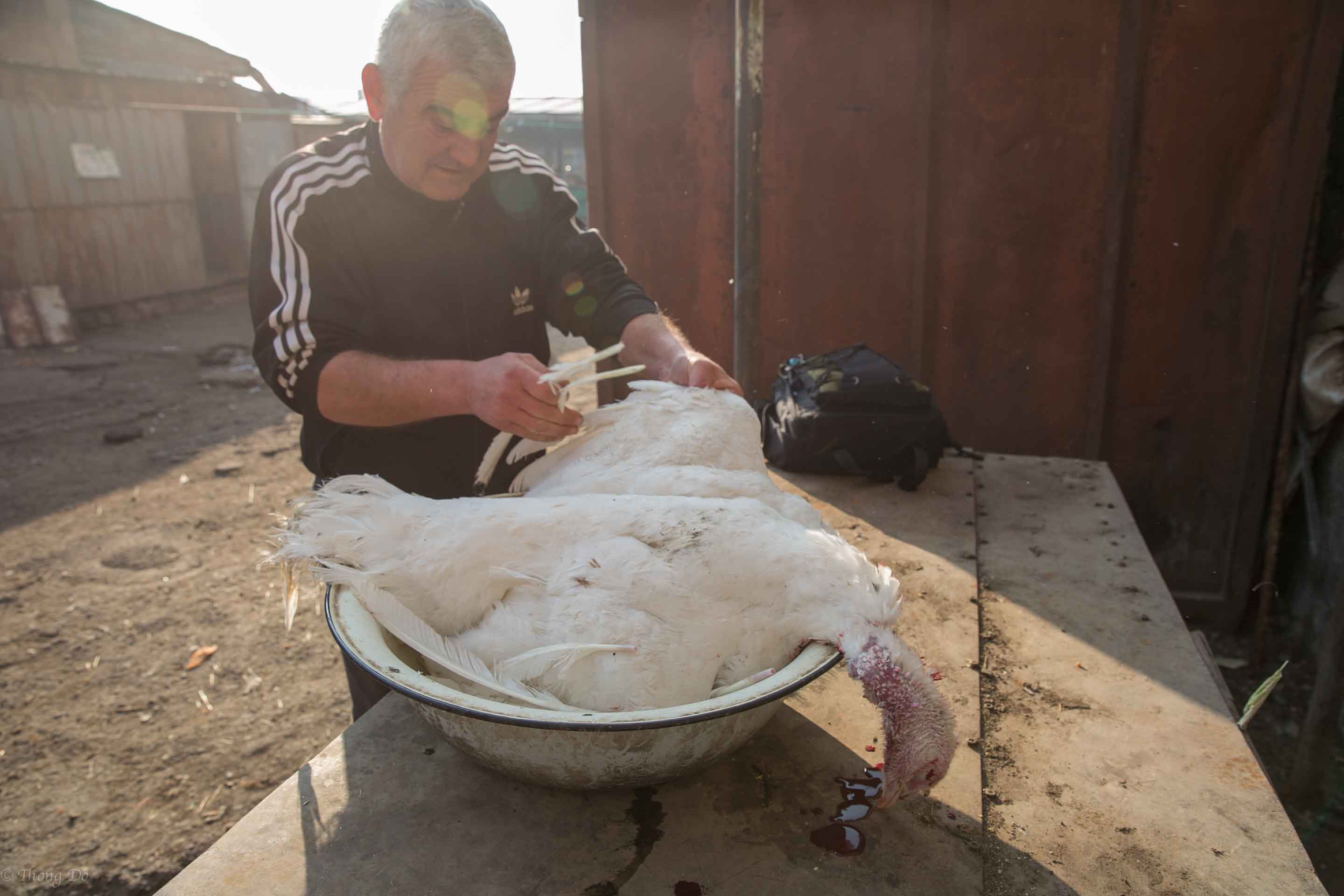 I spotted some turkeys in the Gyumri open market and the vendors told me they sell for 4,000 Armenian Dram per kilogram. I asked if they could get me a 5 kg or 11 pound turkey but they only had an 8 kilogram turkey left when I needed it. I’ve never cooked a turkey myself so I was quite apprehensive to be in charge of this since this is the main dish. I had my brother send me a brine bag from the US to make sure I did it right too.