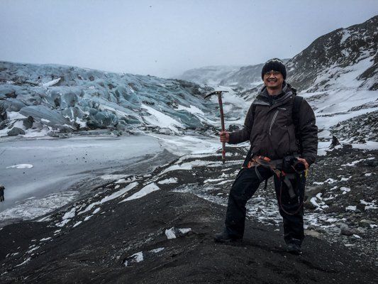 I also took a day trip to hike Myrdalsjokull glacier. Having lived in Southern California most of my life I’ve rarely had the opportunity to be in this type of cold climate so I wanted to do this. Due to the volcanic activity, a substantial area is covered in black volcanic ash. Many of the beaches in the south are covered with it. Wearing a crampon and holding a pick ax made the experience even better although I think the pick ax they offered us was just for show. The other reason why I wanted to do this glacier hike was because this was the area where they filmed many of the scenes from Season 2 of Game of Thrones. I learned from my tour guide that a lot of the ice was a dark blue and that’s how they can determine the age of the water. The lighter the ice, the younger it is, the darker the ice, the older it is.